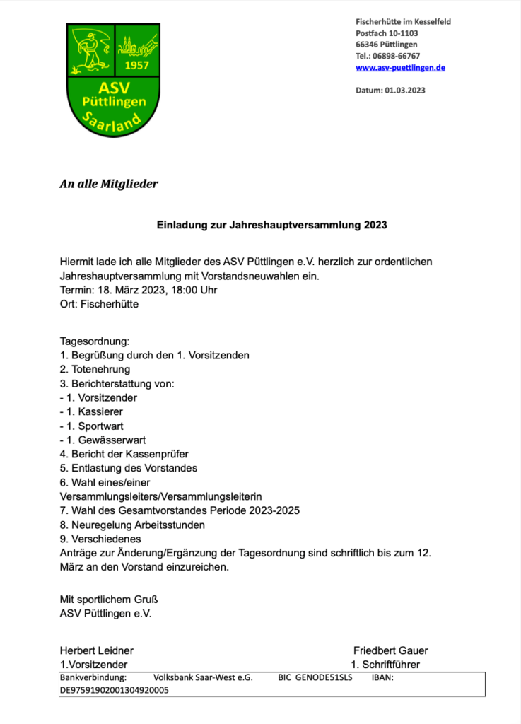 Einladung zur Jahreshauptversammlung 2023