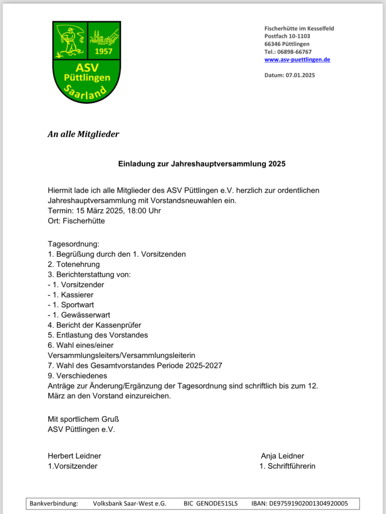 Einladung zur Jahreshauptversammlung!
